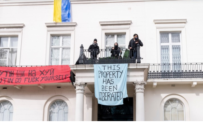 SAY WHAT? - As Russia's war against Ukraine grinds on - and its captured, troubled foot-soldiers begin to concede, "We all will be judged" - activists in France and the U.K. affirmed private property is theft, especially when owned by accomplices to war crimes, by seizing two massive "Mafia castles" owned by Russian oligarchs, claiming them for homeless Ukrainian refugees. In London, squatters calling themselves London Makhnovists - for Nestor Makhno, a Ukrainian anarchist and commander who fought to form a stateless society during the Bolshevik Revolution - occupied a £50-million (about $75-million) mansion owned by Russian aluminum magnate and Putiin bestie Oleg Deripaska, who's accumulated over £2.3 billion in ill-gotten gains, not counting his now-sanctioned, multimillion-pound property portfolio in the UK. After entering what they dubbed the "filthy fancy" monolith in the city's upscale Belgrave Square, the anarchists hung a Ukrainian flag and two banners at the front of the balcony declaring, "This Property Has Been Liberated" and "Putin Go Fuck Yourself"; at the other end, they hung one that read, "Power Breeds Parasites. All Tories Are Oligarchs." They danced, played music, sang the Dirty Dancing song "(I've Had) The Time of My Life," and reportedly, when they noticed people peering out the windows next door, called, "We're your new neighbors - we'll come over tomorrow with some brisket."