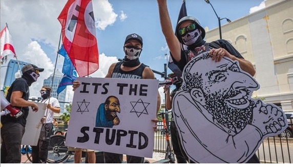 Beyond the feudal halls of the GOP, there's been some blowback. The right-wing Parler pulled out of an impending deal for Ye to buy it; former Ye fans turned his Reddit account, with 700,000 subscribers, into an appreciation page for his longtime nemesis Taylor Swift and a Holocaust awareness resource; Ye was again banned from Twitter for posting a Star of David around a swastika as a symbol for his 2024 "presidential campaign"; he responded by harrassing his ex-wife and defending a dubious Balenciaga ad campaign with, "Cancel cancel culture Jesus please heal." Elsewhere, Philip Roth's "indigenous American berserk," with its attendant violence and hypocrisy, goes on apace. Precisely as Ye was lauding Hitler, Billboard, with "bad timing of Biblical proportions," declared him 2022's Top Gospel Artist and Top Christian Artist; the Internet: "Hitler Did Some Good, Lord," "Onward, Christian Fascists," "People Get Ready - There's A Train With No Water or Ventilation Coming." Fuentes, buoyed by Trump's complicity, said he and Ye are working on a new U.S. Constitution to make real their vision of an authoritarian America that treats opponents "without mercy." And Elon Musk was touting a new Hunter Biden story while re-instating Daily Storm's long-banned, virulently racist, anti-Semitic and misogynistic neo-Nazi Andrew 'YE24' Anglin, who despite two outstanding arrest warrants still vows to "ethnically cleanse" America; in a Charlottesville speech, he boasted he and fellow-thugs would soon be "digging graves" for "enemies of the white race." On Twitter, he was swiftly welcomed back by fans "checking in for duty."
