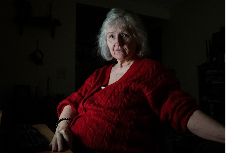 Nance Parry spends hours each day in front of her computer searching and applying for jobs. She describes the over a year long job hunt as frustrating and tiring. Dec. 6, 2021. Photo by Raquel Natalicchio for CalMatters