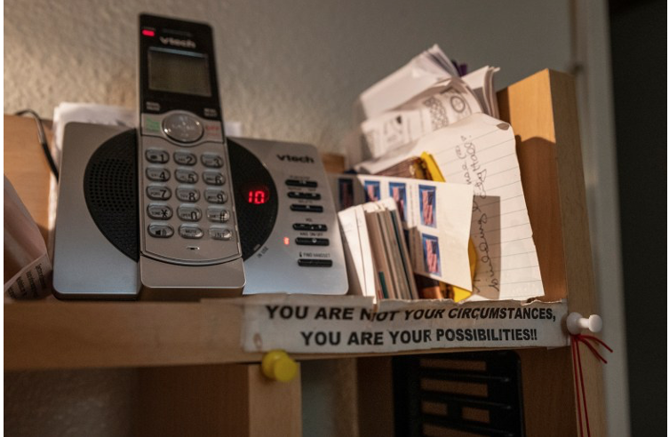 A note with words of encouragement at Nance Parry’s home in Duarte on Dec. 6, 2021. Parry is currently unemployed and searching for work. Photo by Raquel Natalicchio for CalMatters