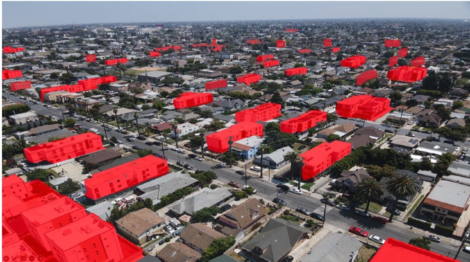 YIMBY legislation is enabling the wholesale destruction of entire neighborhoods, like Jefferson Park in South Los Angeles, a historically black neighborhood that was the locus of the modern Civil Rights Movement in the 1930s and 1940s. Over the last two years a single developer has applied for and been granted more than 200 demolition permits in 1.5 square miles. It’s gentrification in real time. Drone photo by Christopher LeGras