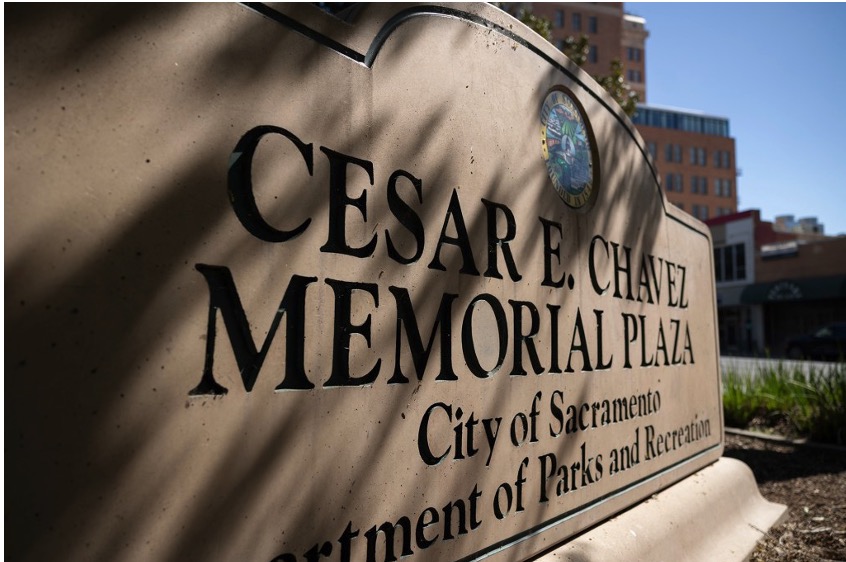 Just outside the state Capitol in Sacramento, a monument and plaza in Cesar Chávez’s name will change, City Councilmember Eric Guerra told CalMatters.