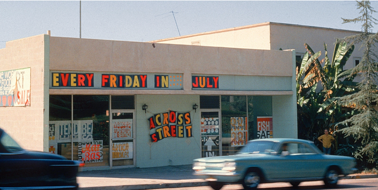 While the building is currently occupied by a dry cleaning business, it is still remembered by Corita’s students, colleagues and enthusiasts as the location where she created many of her powerful artworks. Artworks that addressed issues of poverty, racism, war, and injustice with a distinct bold graphic style that continues to influence artists and advocates worldwide. Due to a private development, the building will be knocked over to make room for more parking, and ultimately scrubbed from Los Angeles history.