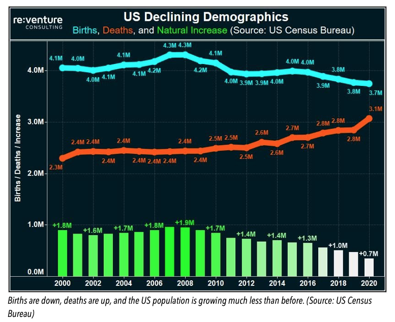 Declining Births, Increasing Deaths: The US is aging. And fast.