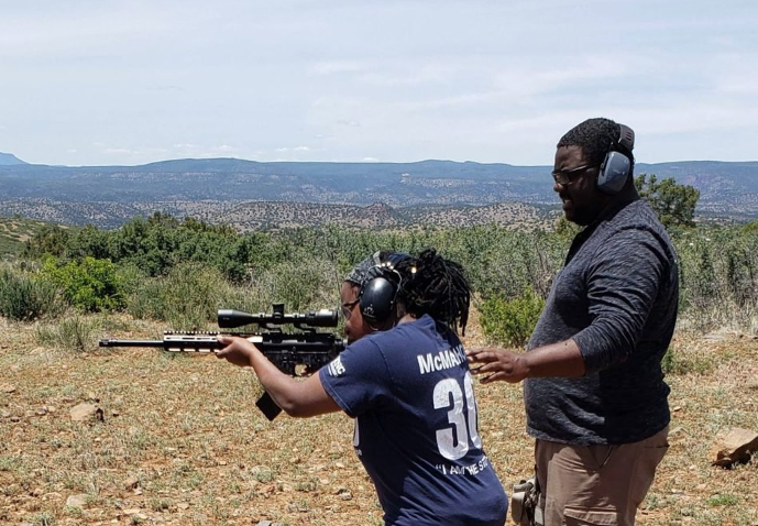 Another student named Liz Holloway said she had never imagined arming herself. But changes in the cultural climate, and the fact she was often by herself, made her think otherwise. “I don’t wanna have to do that,” said Holloway about the prospect of taking a life, “But…I wanna go home.” Alicia Collins was still new to Arizona, having recently moved from Washington, D.C. The Army veteran, who now consults for entrepreneurs and small businesses, was for the first time part of the only Black household on her street, which she found unsettling. “As I get comfortable with firearms, I do expect to get them comfortable with firearms,” she said about passing on what she learns to her two teenage children. Still a novice, she borrowed one of Boykin’s pistols for class. “You don’t just become a gun owner without the education.”