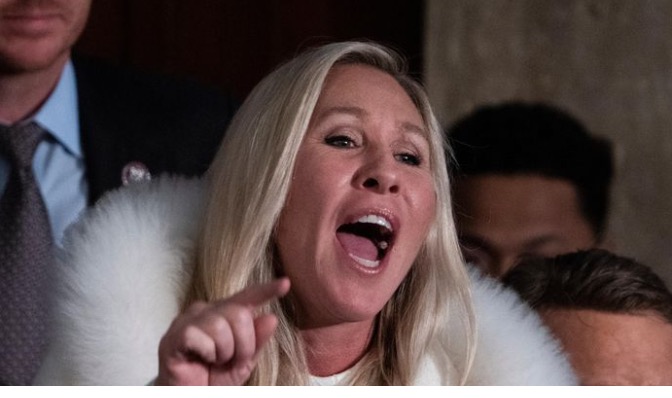 "Liar!" Rep. Marjorie Taylor Greene (R-Ga.) shouted from the audience in response to the president's comment.