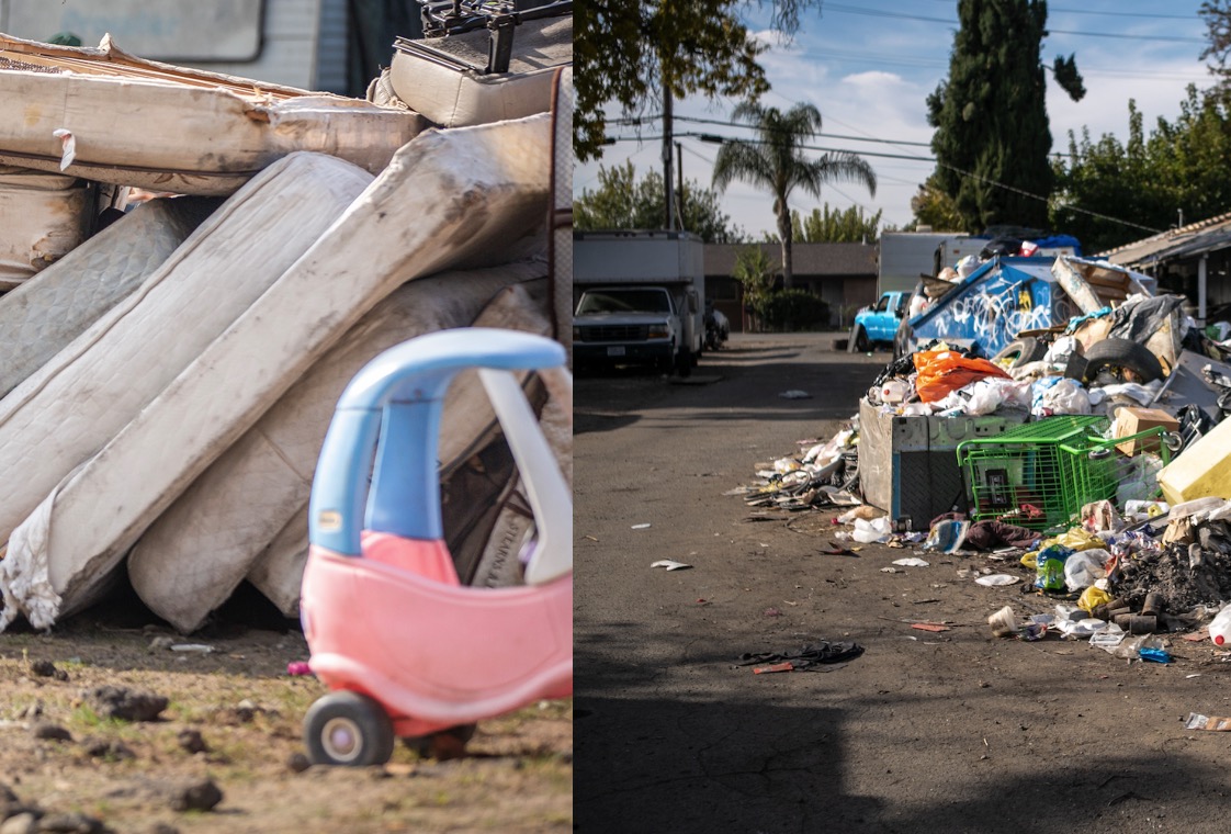 Park owners Howard and Anne Fairbanks appear to have abandoned the property in early 2020 and later that year manager Maria Mendoza died, opening it up to squatters and illegal dumping, according to interviews with the state housing department and court records from a nuisance lawsuit filed by the county of San Joaquin against the Fairbankses. The once-green common area soon filled with wood pallets, dirty mattresses, broken-down cars, discarded washing machines and heaps of gleaming black garbage bags teeming with rats, cockroaches and flies, photos and written reports from state and county inspectors show.