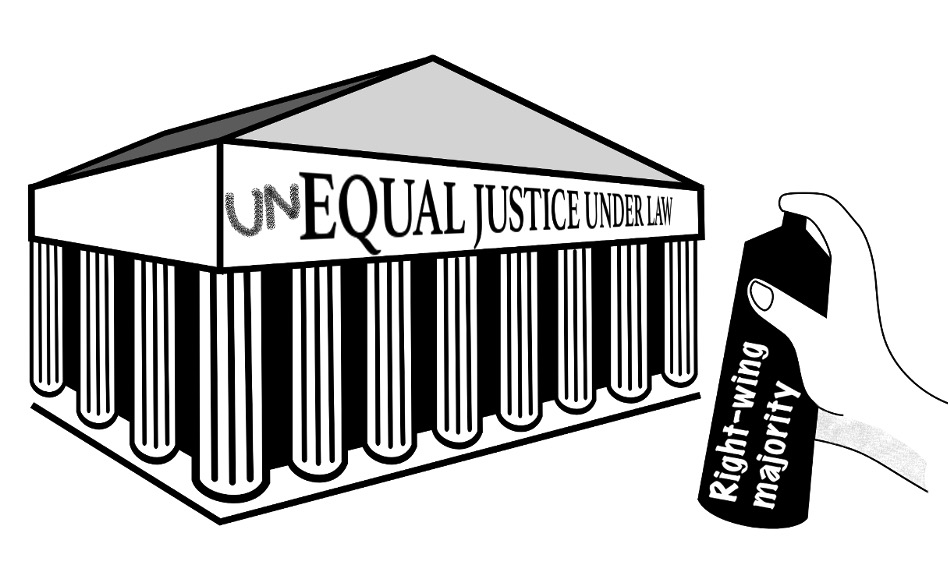 The first is that several of the rulings by Republicans on the court have had the effect of amplifying and solidifying Republican control over the nation. By single-handedly overturning the voting rights act and legalizing bribery by billionaires, they’ve created a political imbalance that fails to represent the people of our country and instead just does what their favorite billionaires and giant corporations want.