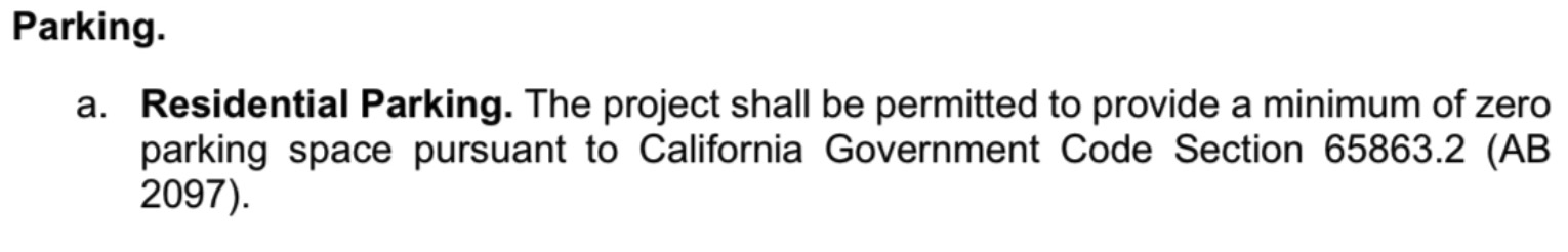 Indeed, a stunning declaration jumps out of the bland jargon of a recent project approval from the City of Los Angeles. “The project shall be permitted to provide a minimum of zero parking space … (AB 2097).”