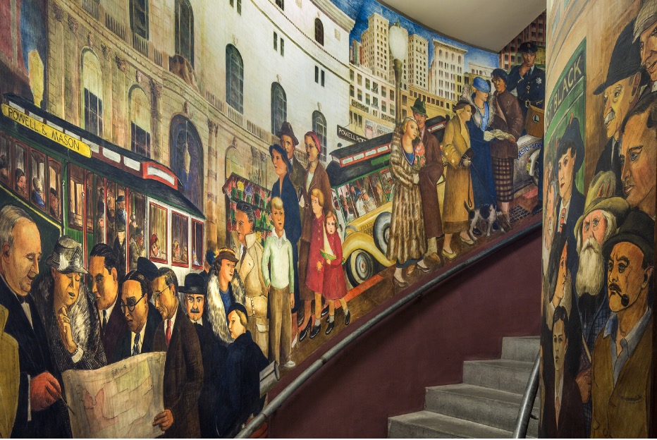 iAUDIT! - If you have never visited San Francisco’s Coit Tower, I encourage you to if and when you find yourself in The City. Besides being an architectural marvel, its interior houses a remarkable collection of murals depicting life in Depression-era California. As part of the New Deal’s Public Works of Art Project, 26 local artists created vivid visual narratives of commercial, agricultural, political, and social life in and around San Francisco. Although each is stylistically distinct, the murals share the neo-realist style of 1930’s United States: vivid colors with strong shadows expressing pressing social themes. The murals present a realistic, albeit stylized, view of a world mired in the depths of the Depression. An idealized San Francisco street scene includes a businessperson being robbed at gunpoint while others nonchalantly walk by. A wealthy family driven in their chauffeured car to view a new WPA dam gawk at a hungry migrant family camped by a stream. Workers march toward the viewer from a burning wheat field, some with clenched fists held high in the universal sign of socialism.
