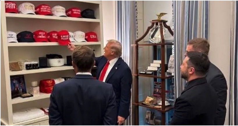 MARKED DOWN - During a break from the high stakes meeting between President Trump, Volodymyr Zelensky, and a bevy of NATO leaders, the President led a brief tour of his latest addition to the White House, a gift shop. Photos of the shop showed a selection of MAGA hats and other typical tourism trinkets (coffee mugs, tee shirts and such). Because the stakes of the summit were so high, the tour ended quickly, leaving the NATO leaders and the public without a complete view of all the shop has to offer, never mind the shop’s current “deep discount” Summer Sale items.