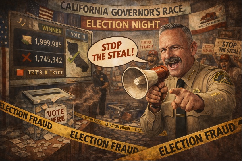 The Riverside’s alt-Republican answer to Maricopa County, Arizona’s Joe Arpaio with a Trump-like lack of grasp on reality in thinking a claim of voter fraud in one county could reverse the wave of Californians disgusted at the Republican breaking of norms redrawing electoral maps in red states across the country.