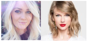 So let's take a good look at her pretty face, and compare her to Taylor Swift's pretty face as well: